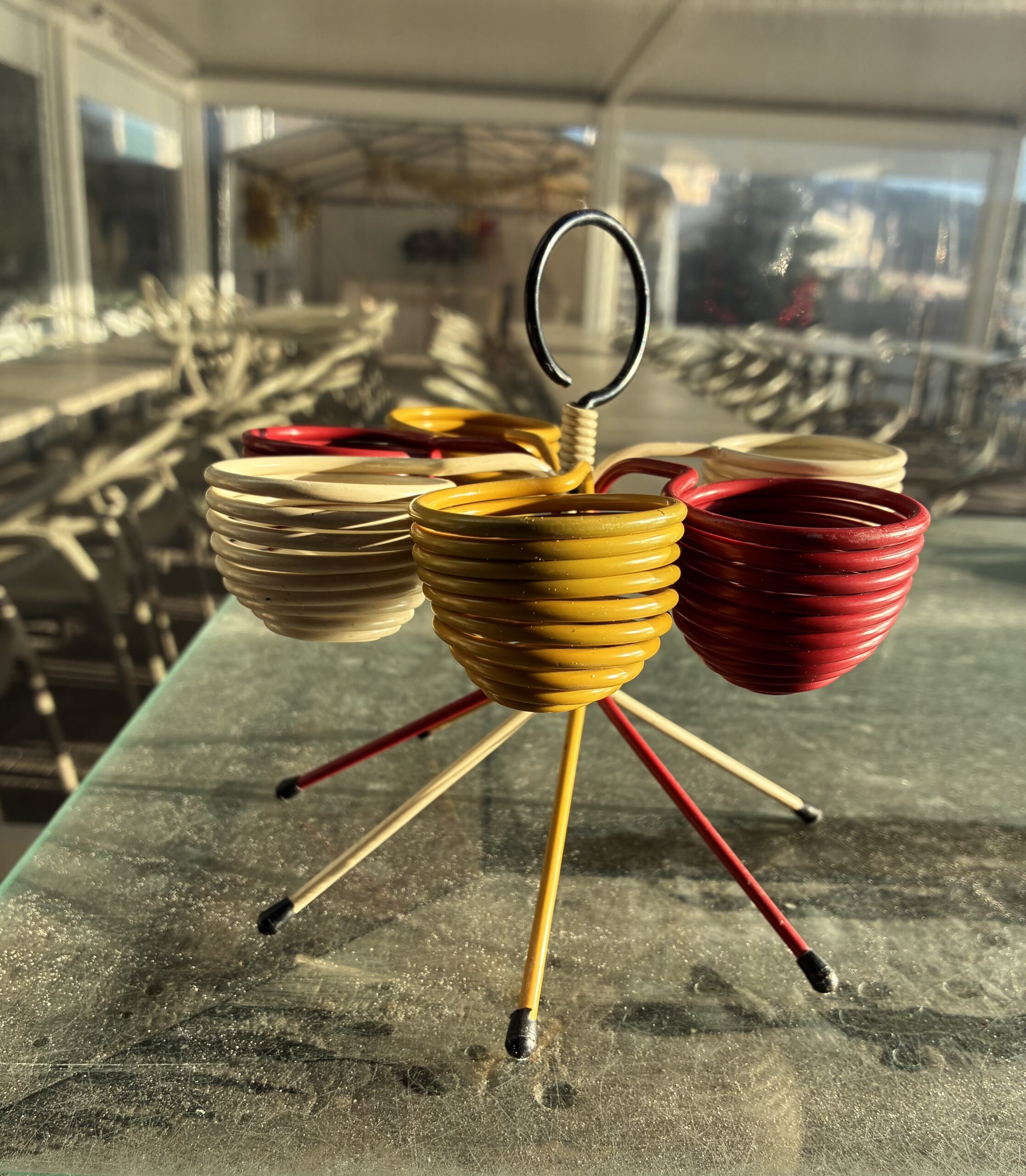 Porte oeuf en métal gainé trois couleurs année 50/60